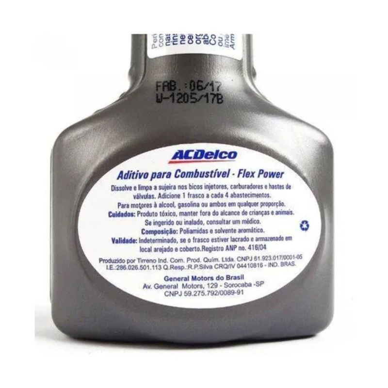 Adicionar 01 frasco do aditivo de combustiveis ACDelco FlexPower a cada quatro abastecimentos ou a cada 200 litros, sempre com o tanque cheio.